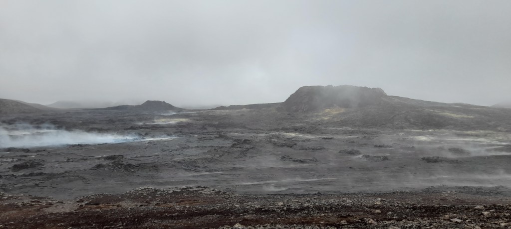 Having seen so many videos of Fagradalsfjall on YouTube, I had to pay it a visit in real life. I headed to the site of the 2021 eruption, where the lava flows are still steaming two years later. Although the flows have solidified, their scale and their texture are still an incredible spectacle – and with the flows being so thick, their interiors are hot even now.