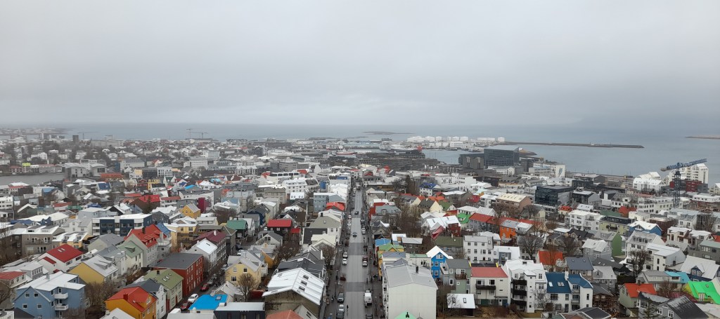However, on arrival in Reykjavik, things start to feel less alien. It’s a small city, and two-thirds of Iceland’s population live in its vicinity, making it home to 240,000 people (roughly equal to Milton Keynes). The houses are typically detached from one another, rather than terraced, and their walls are painted in various bright colours to combat the persistent greyness. The sky is grey, the ground is grey, the sea is grey… Perhaps I was unlucky with the weather while I was there, but I doubt it. I had a few precious glimpses of blue sky throughout the week, but generally speaking, the rain only ever let up when it decided to hail instead.