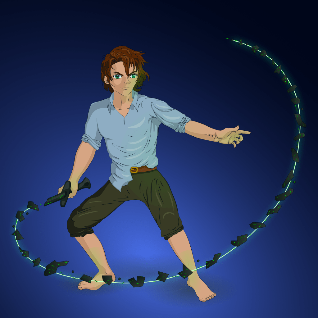 Hello readers! This week I thought I would share some concept art from my Highmoor book series. For those of you that haven’t read it, this is Joseph, one of the four protagonists, and he’s wielding an obsidian sword that makes its first appearance in the second book. Obviously, this is no ordinary sword; its blade can shatter into dozens of shards connected by an intangible thread, and these shards can be summoned back to reform the blade in the blink of an eye. Fantasy weapons of this type are often referred to as “whip swords” – and today I’ll spend some time exploring their origin and feasibility, before explaining why obsidian is a terrible choice for a sword in real life, but an excellent choice in the context of Highmoor’s magic system.