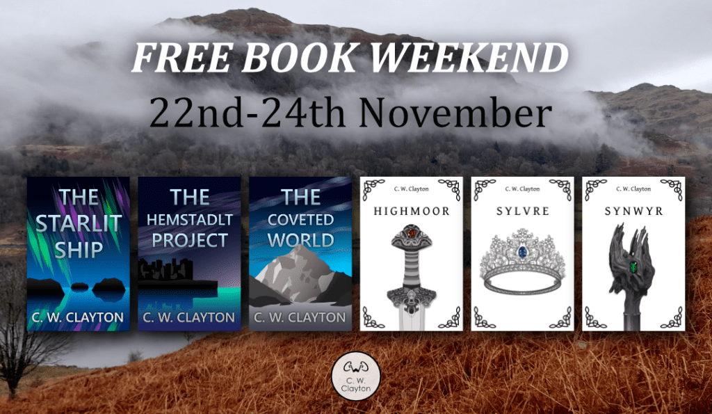 Hello readers! From Friday to Sunday, all my books will be FREE on Amazon (find them here). My current series, Highmoor, is traditional high fantasy, and the first three books are now out (with the final instalment in progress). These books follow the adventures of three brothers caught up in a conflict between the nations bordering their forest home. It has political scheming, an intricate magic system, non-conventional witches and mind-reading dragons. I also have an earlier series, The Starlit Ship, a trilogy of three science fiction thrillers set in the far future on a distant planet, centuries after it was colonised by humans. These books explore the environmental and political consequences of a giant, unexplained ship arriving in orbit, so if any of that piques your interest, make the most of the free book weekend!