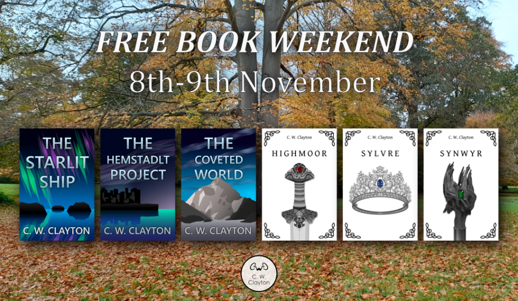 Hello readers! This weekend, all of my books will be FREE on Amazon! My current series, Highmoor, is traditional high fantasy, and the first three books are now out (with the final instalment in progress). These books follow the adventures of three brothers caught up in a conflict between the nations bordering their forest home. It has political scheming, an intricate magic system, non-conventional witches and mind-reading dragons. I also have an earlier series, The Starlit Ship, a trilogy of three science fiction thrillers set in the far future on a distant planet, centuries after it was colonised by humans. These books explore the environmental and political consequences of a giant, unexplained ship arriving in orbit. If any of that piques your interest, make the most of the free book weekend!
